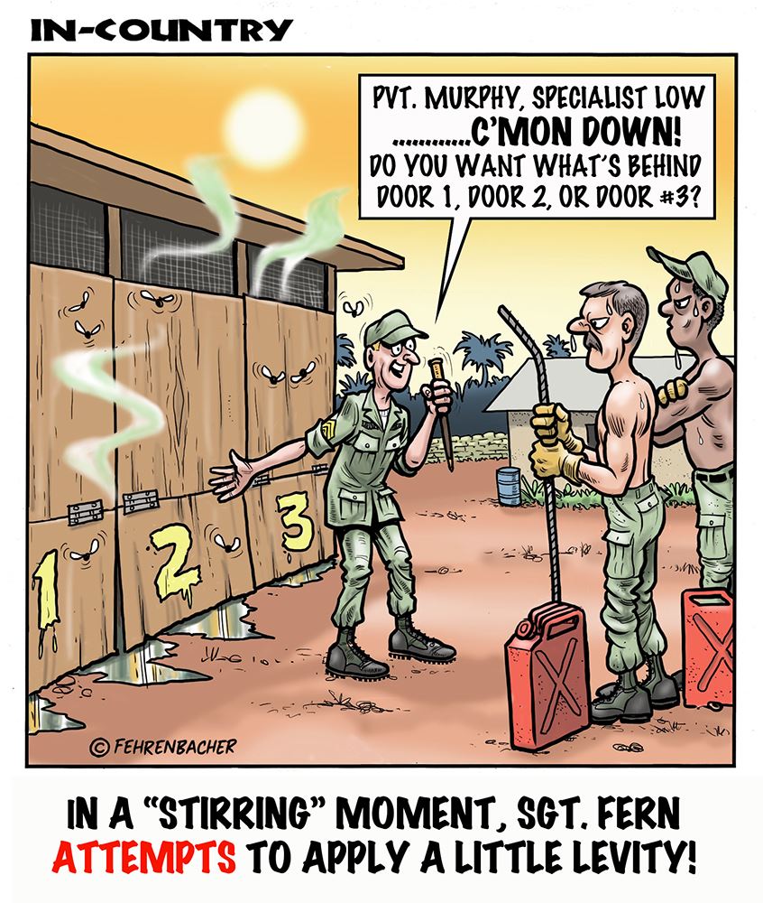 Phil enlisted in the Army in 1965 where you served for years in Vietnam. He became a graphic designer and has worked for the state of Oregon for 26 years. He retired in 2003 and started the Cartoon "In-Country". The cartoons reflect his experiences during his tour of duty in South Vietnam.